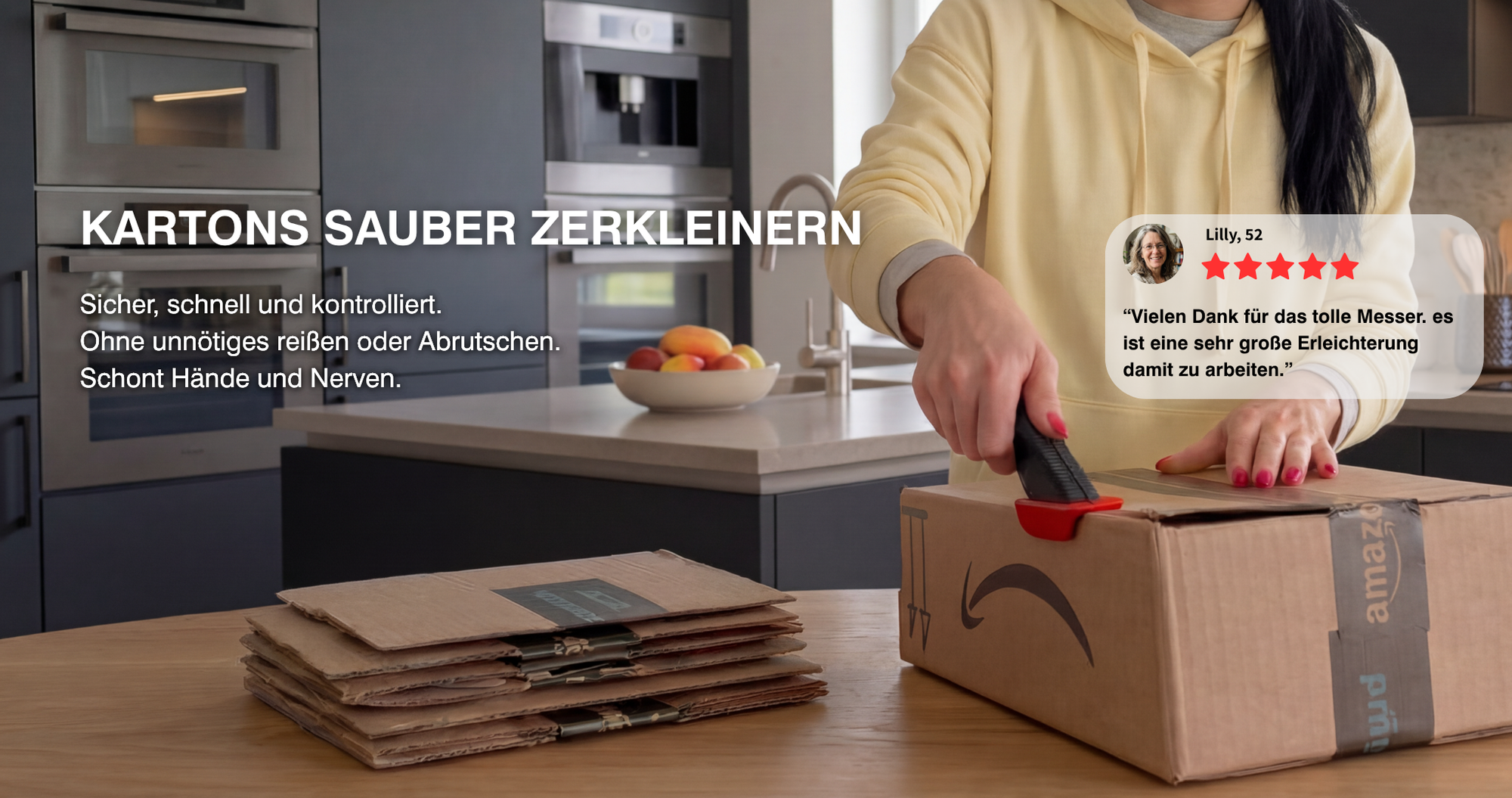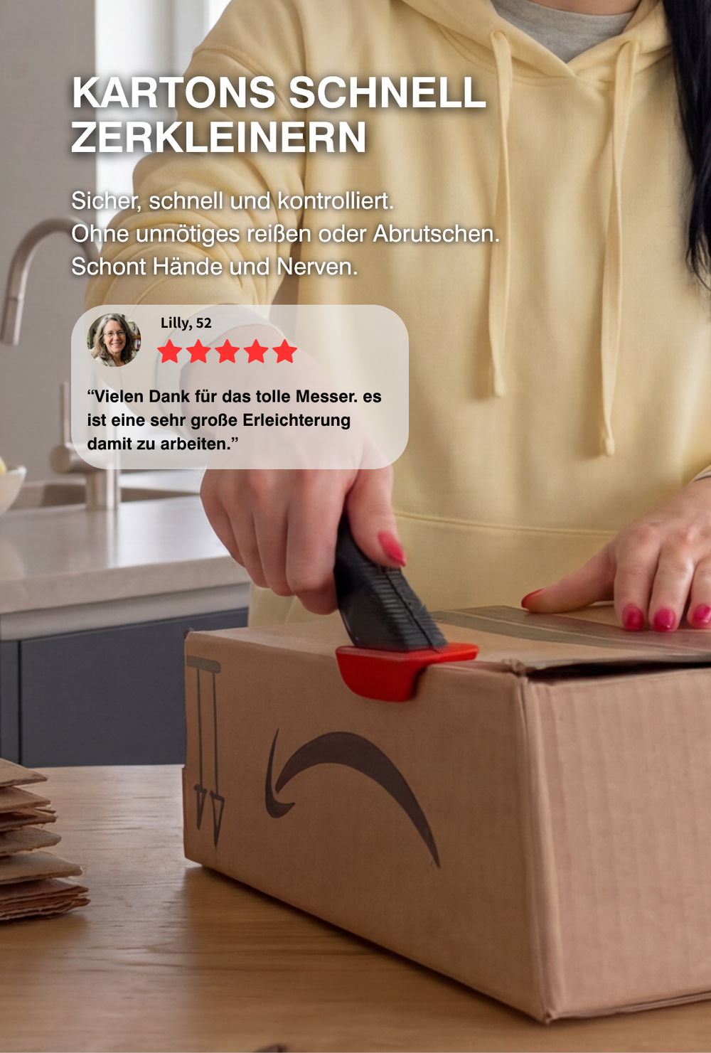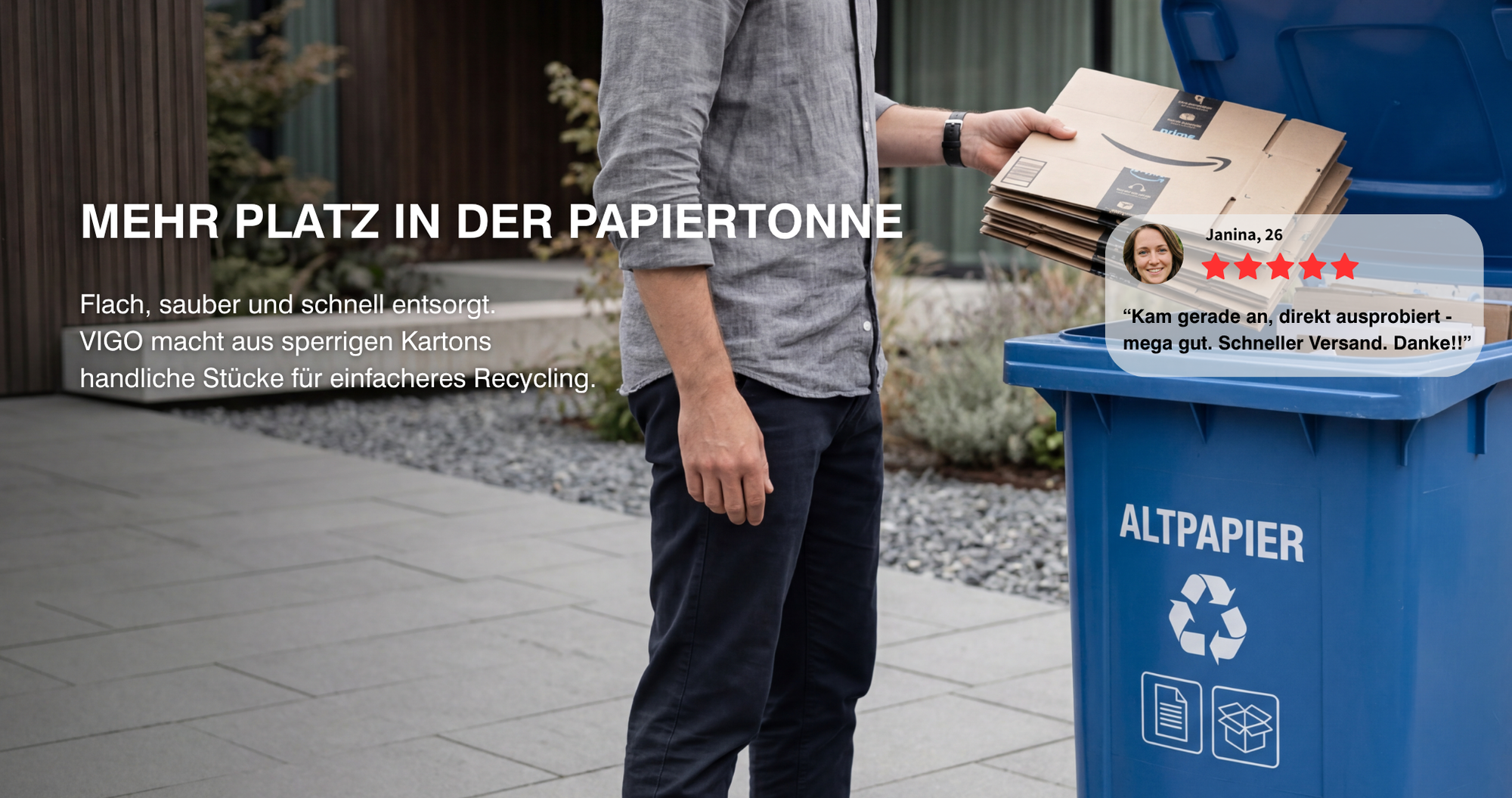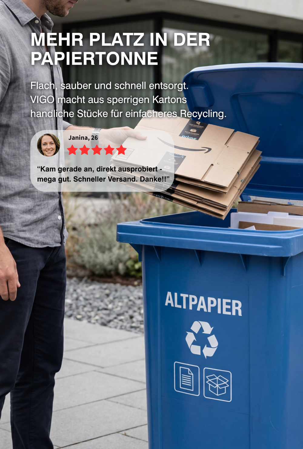 VIGO öffnet Pakete sicher und macht Kartons schnell bereit fürs Recycling.