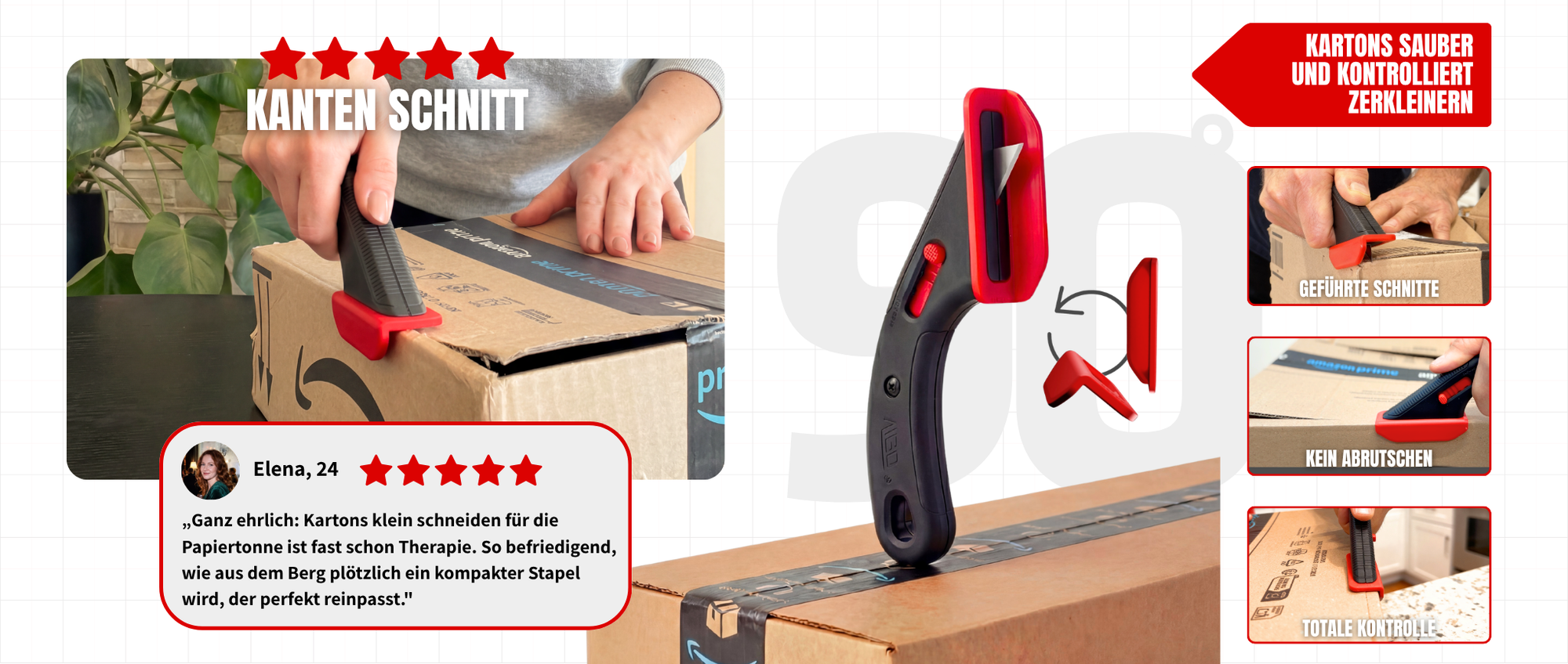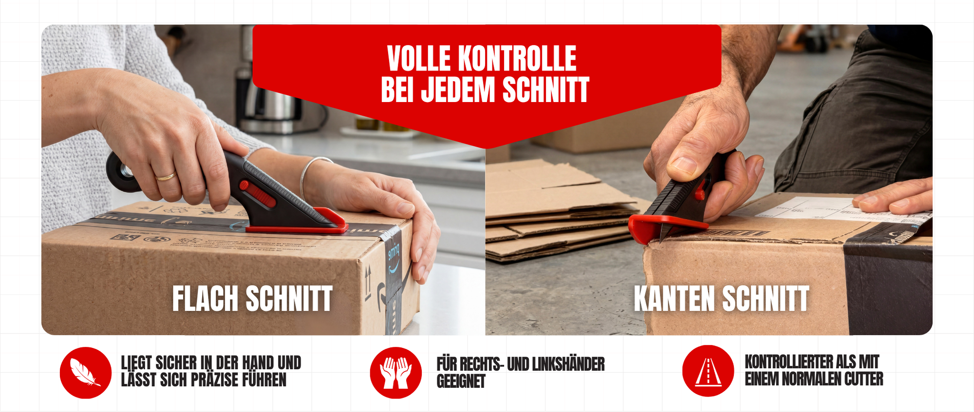 Was sich im Alltag schnell zeigt: Die Handhaltung bleibt gleich, auch wenn man mehrere Kartons hintereinander öffnet. Man greift es, setzt an, zieht durch, legt es wieder weg, ohne die Bewegung jedes Mal neu zu justieren.